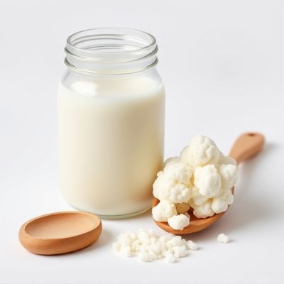 Milchkefir ist ein fermentiertes Milchgetränk, das durch Kefirknollen hergestellt wird. Diese Knollen sind symbiotische Kolonien aus Milchsäurebakterien und Hefen und können eine deutlich höhere Kulturenvielfalt als herkömmlicher Joghurt aufweisen.